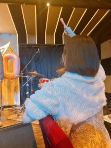 菓子のマイクを持ちながら歌っていました。